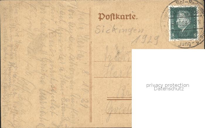 32185763 alte Postkarte Sickingen Pfalz Alte historische Sickinger Schlosskeller-Schenke Wappen Gedicht postalisch gelaufen Erhaltung siehe scans KatCode: 11110007335022