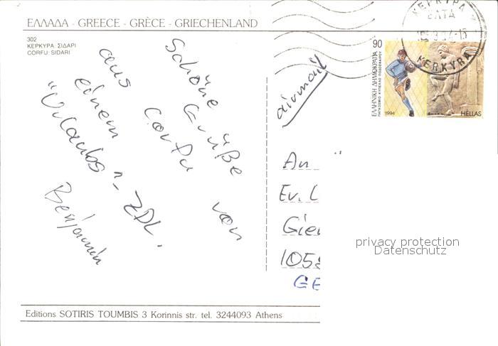 old postcard Sidari Korfu Felskueste Bucht Strand postalisch gelaufen Erhaltung siehe scans