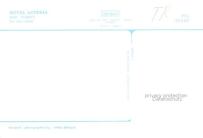 Side Antalya Hotel Asteria postalisch nicht gelaufen Erhaltung siehe scans [PaolaD17]