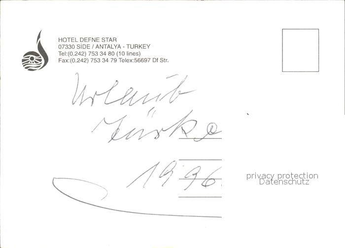 Side Antalya Hotel Defne Star postalisch nicht gelaufen Erhaltung siehe scans