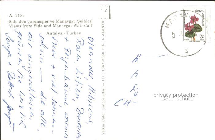 old postcard Side Antalya Manavgat Waterfall postalisch gelaufen Erhaltung siehe scans