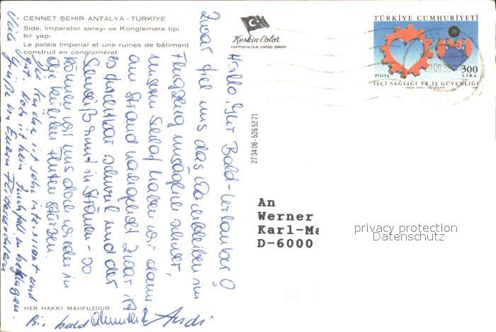 old postcard Side Antalya Palais Imperial ruines batiment construit conglomerat postalisch gelaufen Erhaltung siehe scans