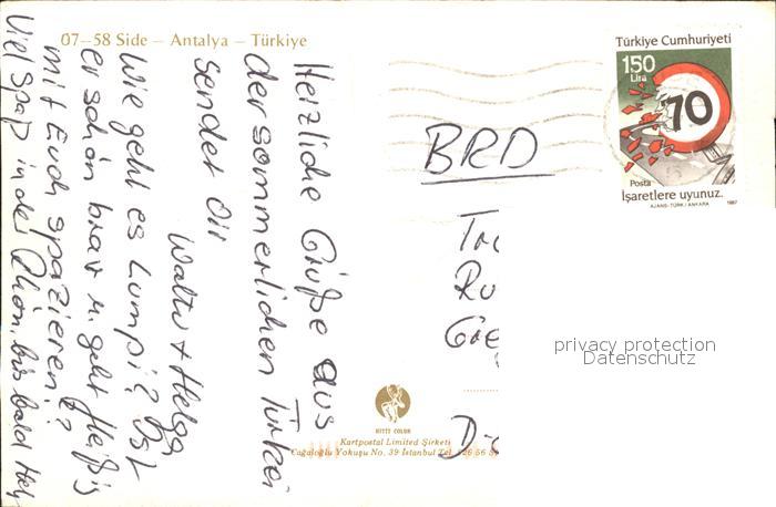 old postcard Side Antalya Ruine Theater postalisch gelaufen Erhaltung siehe scans