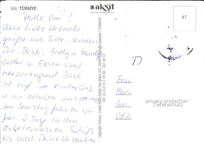 old postcard Side Antalya Theater Vespasiantor Apollontempel Abendstimmung Luftbild postalisch gelaufen Erhaltung siehe scans