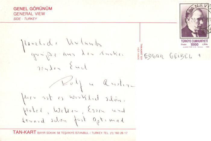 old postcard Side Antalya TK Genel Goeruenuem Fliegeraufnahme postalisch gelaufen Erhaltung siehe scans [WerneD78]