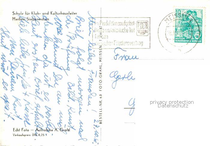72727485 alte Postkarte Siebeneichen Meissen Schule fuer Klub und Kulturhausleiter postalisch gelaufen Erhaltung siehe scans [FriedD77] KatCode: 11110014280240