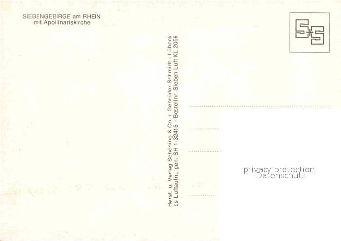 72896137 Siebengebirge Fliegeraufnahme Apollinariskirche postalisch nicht gelaufen Erhaltung siehe scans [AndreD76] KatCode: 11110005382024