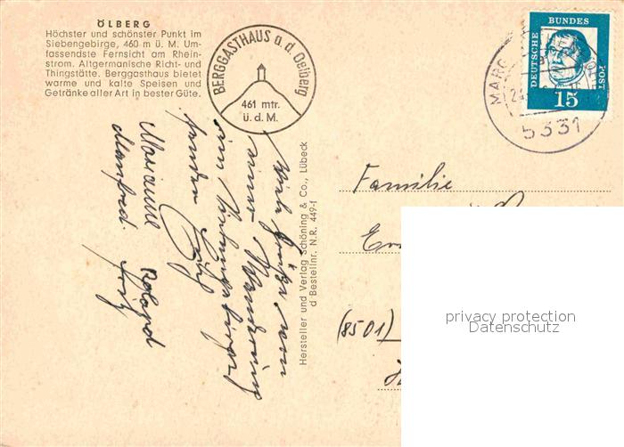 72698963 alte Postkarte Siebengebirge oelberg Berggasthaus postalisch gelaufen Erhaltung siehe scans [KathaD79] KatCode: 11110005382024