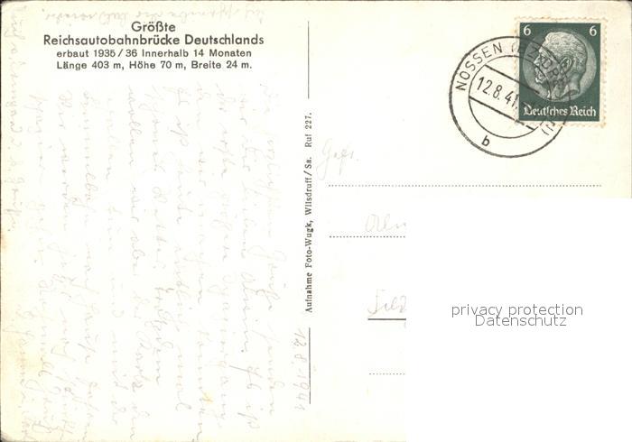 72176795 alte Postkarte Siebenlehn Reichsautobahnbruecke ueber Muldental postalisch gelaufen Erhaltung siehe scans KatCode: 11110014177180