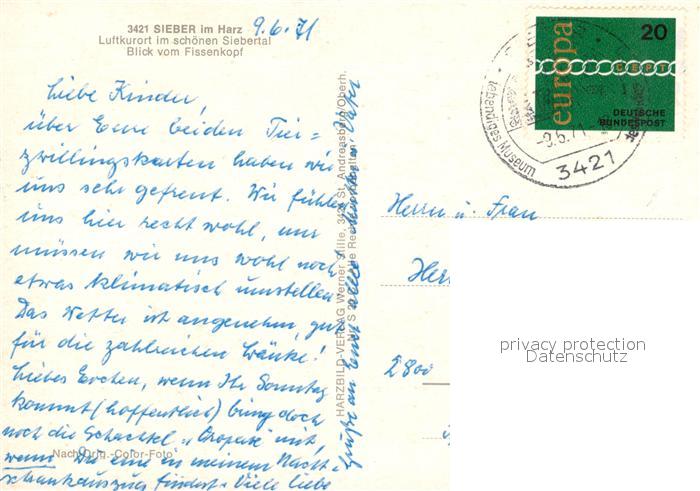 73059195 alte Postkarte Sieber Blick vom Fissenkopf postalisch gelaufen Erhaltung siehe scans [WerneD78] KatCode: 11110003156009
