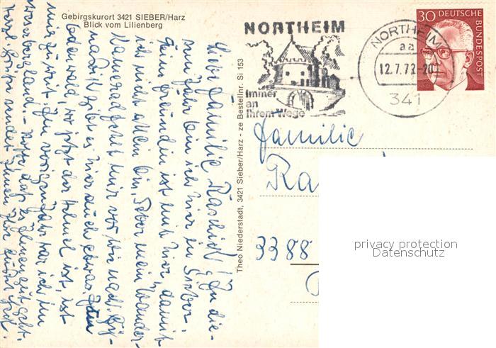 73121725 alte Postkarte Sieber Blick vom Lilienberg postalisch gelaufen Erhaltung siehe scans [KathaD81] KatCode: 11110003156009