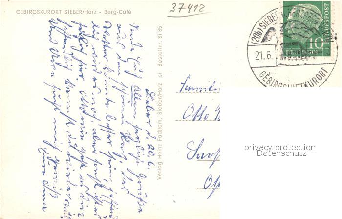 73763558 Sieber Herzberg am Harz Osterode Niedersachsen Berg Cafe postalisch gelaufen Erhaltung siehe scans [FriedD77] alte Postkarte Frie Katcode 11110003156009
