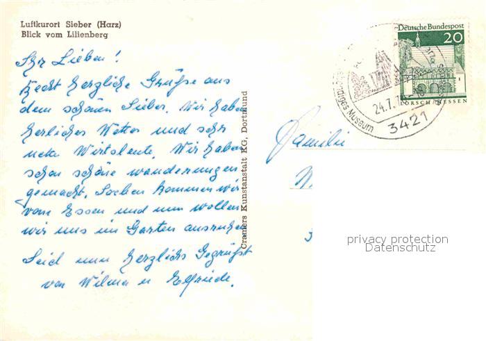 72825397 alte Postkarte Sieber Herzberg am Harz Osterode Niedersachsen Blick vom Lillenberg postalisch gelaufen Erhaltung siehe scans [AndreD76] KatCode: 11110003156009