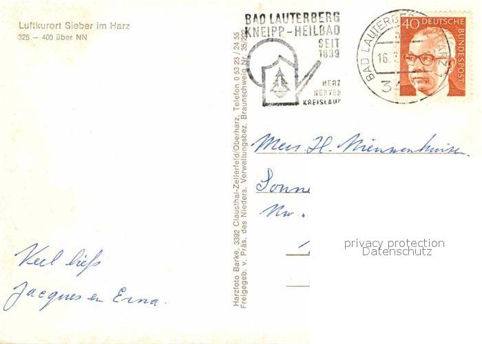 72663994 alte Postkarte Sieber Herzberg am Harz Osterode Niedersachsen Fliegeraufnahme postalisch gelaufen Erhaltung siehe scans [FriedD77] KatCode: 11110003156009