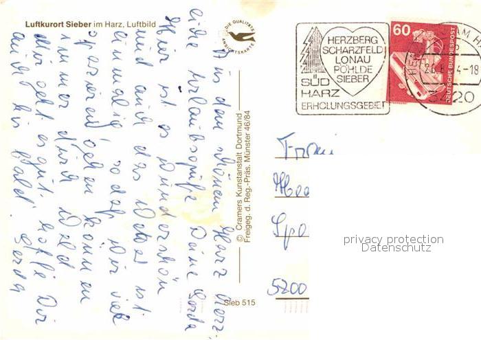 72781769 alte Postkarte Sieber Herzberg am Harz Osterode Niedersachsen Luftkurort Fliegeraufnahme postalisch gelaufen Erhaltung siehe scans [FriedD77] KatCode: 11110003156009
