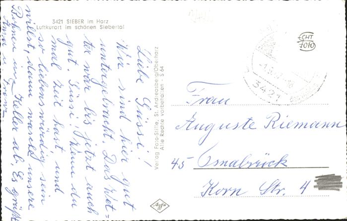 41289074 Sieber Herzberg am Harz Osterode Niedersachsen Teilansicht Sieber Kirche postalisch gelaufen gute Erhaltung Alte Ansichtskarte Postkarte alte Postkarte hz_F Katcode 11110003156009