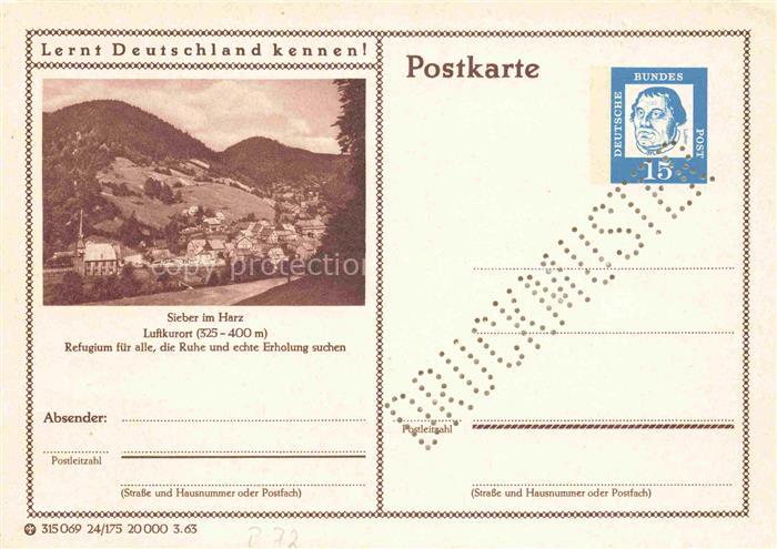 Sieber Herzberg am Harz Panorama postalisch nicht gelaufen Ganzsache (eingedruckte Briefmarke) Erhaltung siehe scans [WerneD78] Ganzsache (eingedruckte Briefmarke) Wern Katcode 11110003156009