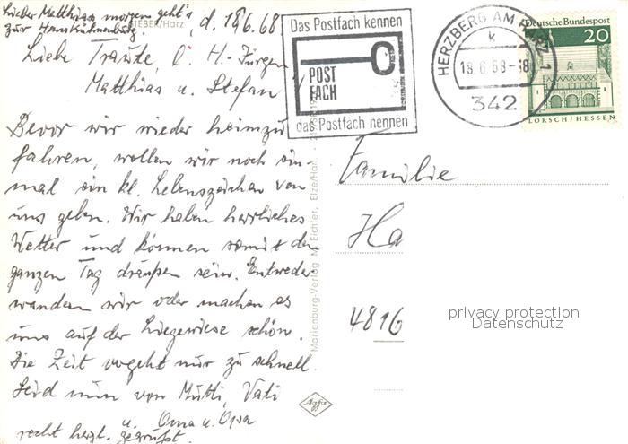 73839960 alte Postkarte Sieber Herzberg am Harz Turm Kirche Panorama postalisch gelaufen Erhaltung siehe scans [WerneD78] KatCode: 11110003156009