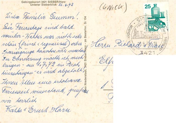 73924084 alte Postkarte Sieber Herzberg am Harz Unterer Sieberblick postalisch gelaufen Erhaltung siehe scans [FriedD77] KatCode: 11110003156009