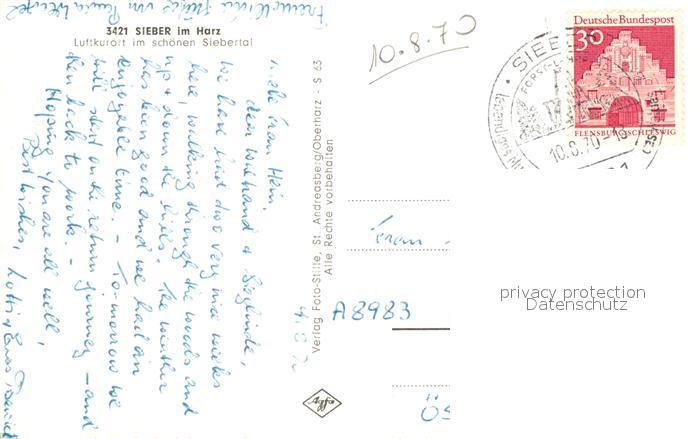 73072365 alte Postkarte Sieber Panorama postalisch gelaufen Erhaltung siehe scans [WerneD78] KatCode: 11110003156009