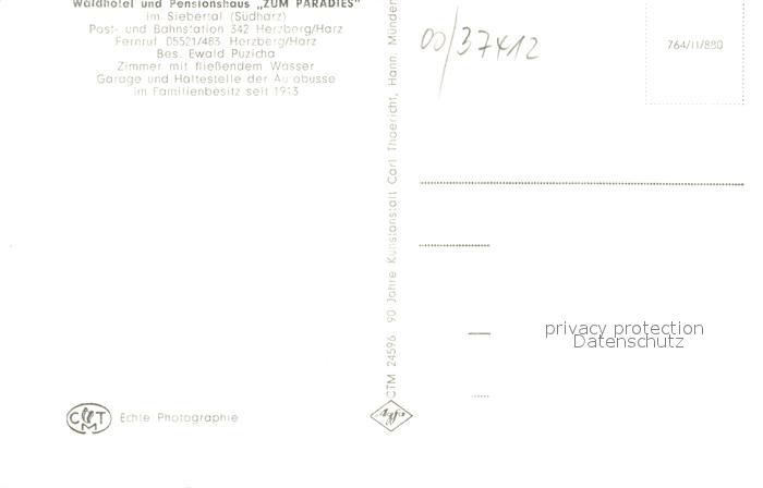 73652494 Siebertal Herzberg Hotel Zum Paradies Gastraum postalisch nicht gelaufen Erhaltung siehe scans [WerneD78] KatCode: 11110003156009