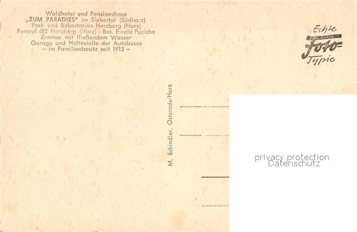 32981281 Siebertal Herzberg Waldhotel Zum Paradies postalisch nicht gelaufen Erhaltung siehe scans [NatalD47] KatCode: 11110003156009
