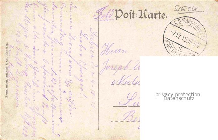 74007701 alte Postkarte Sieck Rudolf Kuenstlerkarte Rosenheim am Inn postalisch gelaufen Erhaltung siehe scans [IrynaD87] KatCode: 22240000003200