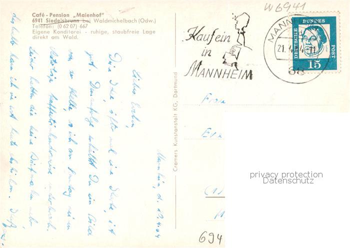 73793362 alte Postkarte Siedelsbrunn Cafe-Pension Maienhof Aussenansicht postalisch gelaufen Erhaltung siehe scans [LiesaD40] KatCode: 11110006431021