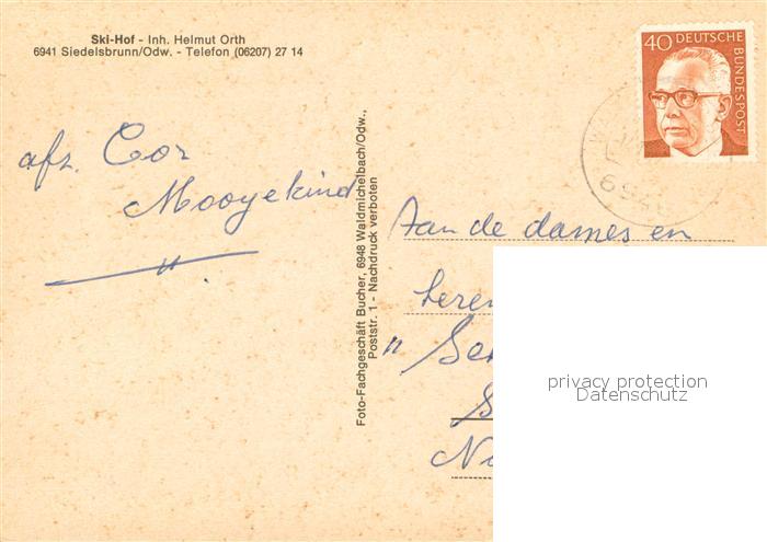 73642195 alte Postkarte Siedelsbrunn Cafe Restaurant Ski Hof Gaststube postalisch gelaufen Erhaltung siehe scans [WerneD78] KatCode: 11110006431021