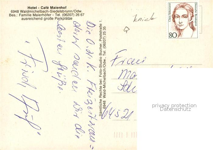 73093881 alte Postkarte Siedelsbrunn Hotel Cafe Maienhof postalisch gelaufen Erhaltung siehe scans [KathaD81] KatCode: 11110006431021