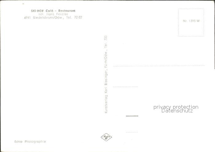 72100271 Siedelsbrunn Ski Hof Cafe Restaurant Hubertus Stube postalisch nicht gelaufen Erhaltung siehe scans KatCode: 11110006431021