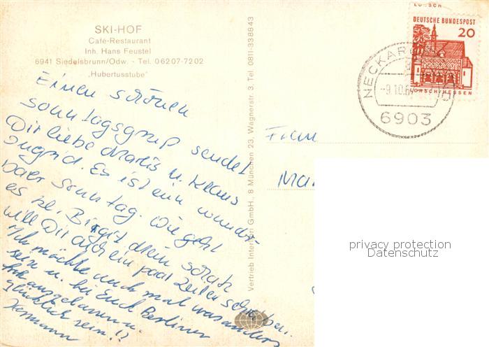 73804390 alte Postkarte Siedelsbrunn Ski Hof Cafe Restaurant postalisch gelaufen Erhaltung siehe scans [WerneD78] KatCode: 11110006431021