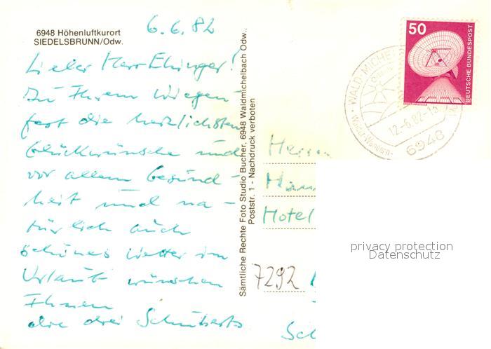 73174594 alte Postkarte Siedelsbrunn postalisch gelaufen Erhaltung siehe scans [PaolaD17] KatCode: 11110006431021