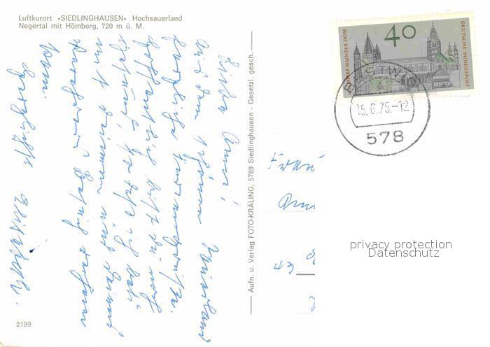 72729028 alte Postkarte Siedlinghausen Negertal Hoemberg postalisch gelaufen Erhaltung siehe scans [AndreD76] KatCode: 11110005958048