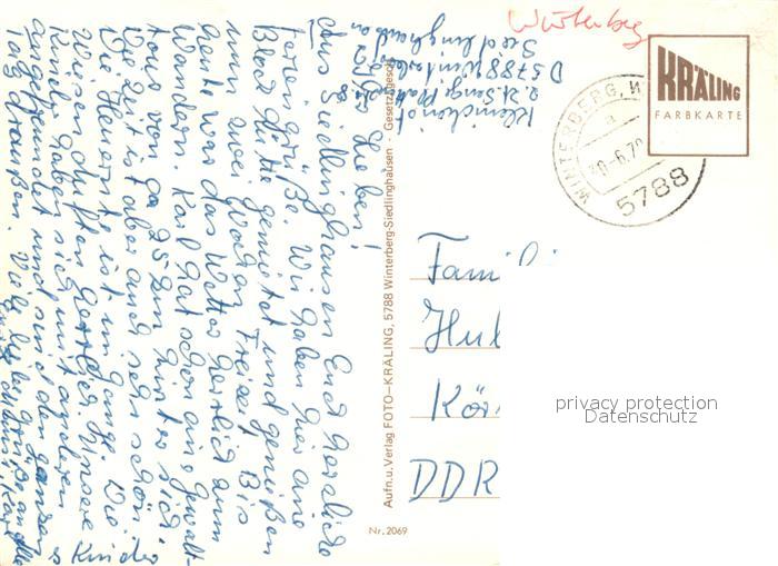 73168046 alte Postkarte Siedlinghausen Panorama Brunnen Kreuz Nachtaufnahme Park Fliegeraufnahme postalisch gelaufen Erhaltung siehe scans [KathaD81] KatCode: 11110005958048
