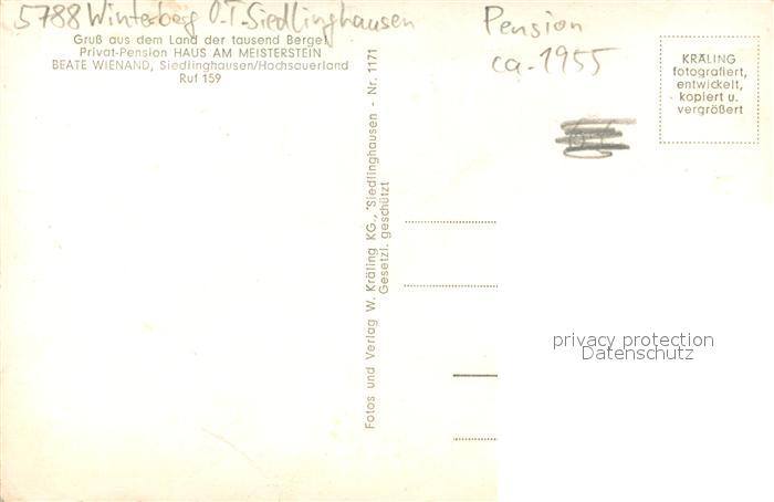 73705833 Siedlinghausen Privat Pension haus am Meisterstein postalisch nicht gelaufen Erhaltung siehe scans [WerneD78] KatCode: 11110005958048