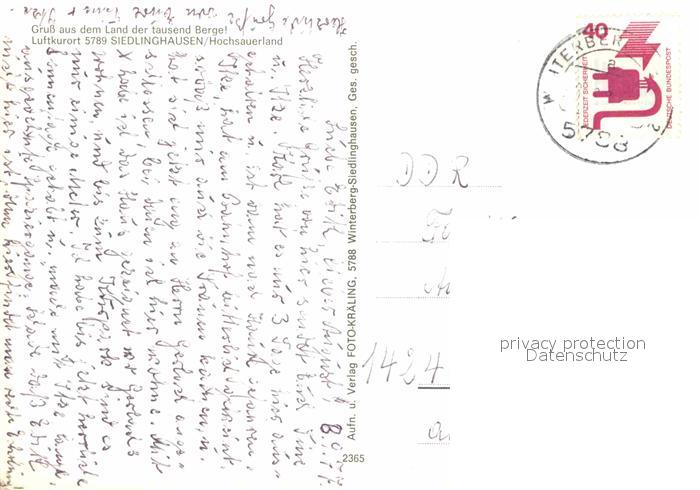 72903888 alte Postkarte Siedlinghausen Teilansicht postalisch gelaufen Erhaltung siehe scans [AndreD76] KatCode: 11110005958048