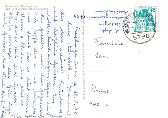 73942475 alte Postkarte Siedlinghausen Winterberg Marienheim Kindergarten postalisch gelaufen Erhaltung siehe scans [WerneD78] KatCode: 11110005958048