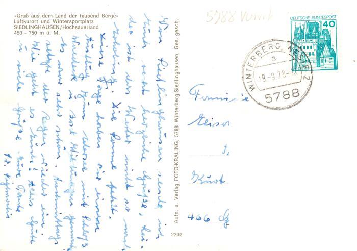 73943445 alte Postkarte Siedlinghausen Winterberg Panorama postalisch gelaufen Erhaltung siehe scans [WerneD78] KatCode: 11110005958048