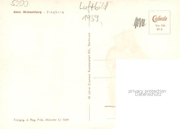 73692661 Siegburg Abtei Michaelsberg postalisch nicht gelaufen Fliegeraufnahme Erhaltung siehe scans [FriedD77] KatCode: 11110005382060