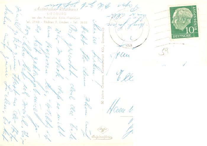73878546 alte Postkarte Siegburg Autobahn-Rasthaus BAB Koeln-Frankfurt postalisch gelaufen Fliegeraufnahme Erhaltung siehe scans [FriedD77] KatCode: 11110005382060