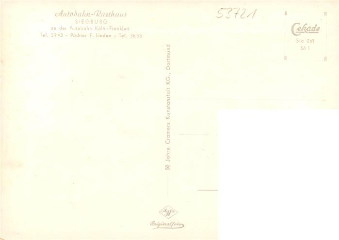 73878906 Siegburg Autobahn Rasthaus Siegburg Fliegeraufnahme postalisch nicht gelaufen Erhaltung siehe scans [FriedD77] KatCode: 11110005382060