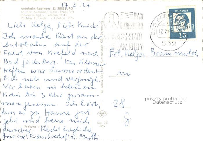 71929924 alte Postkarte Siegburg Autobahn Rasthaus Siegburg postalisch gelaufen Erhaltung siehe scans KatCode: 11110005382060