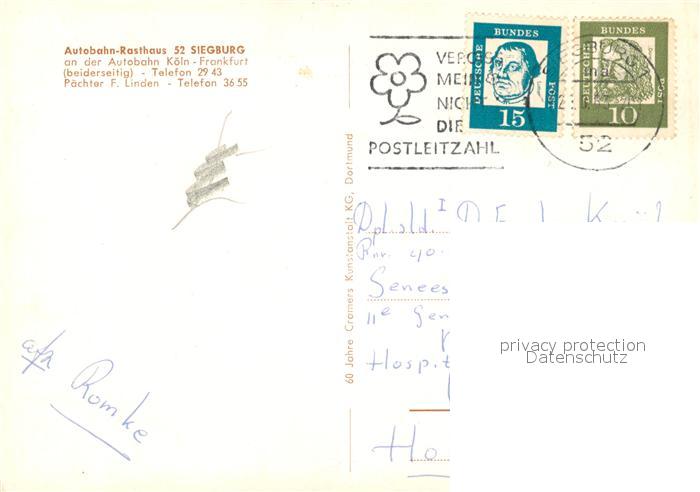 73119694 alte Postkarte Siegburg Autobahn Rasthaus postalisch gelaufen Erhaltung siehe scans [LiesaD40] KatCode: 11110005382060