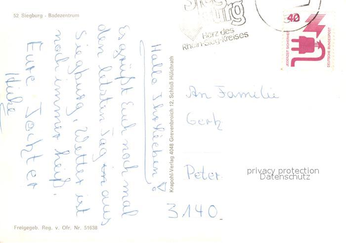 72946510 alte Postkarte Siegburg Fliegeraufnahme Badezentrum postalisch gelaufen Erhaltung siehe scans [LiesaD40] KatCode: 11110005382060