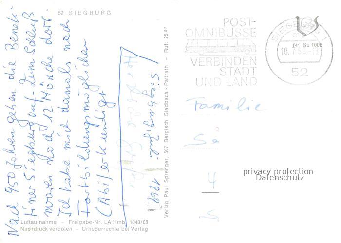 34143403 alte Postkarte Siegburg NRW Abtei postalisch gelaufen Fliegeraufnahme Erhaltung siehe scans [FriedD77] KatCode: 11110005382060
