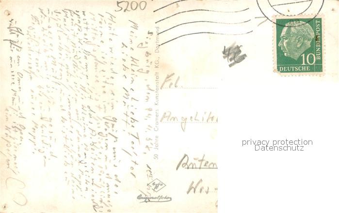 73691755 alte Postkarte Siegburg Panorama Blick zur Abtei Michaelsberg Landratsamt Partie am Muehlenteich Autobahnrasthaus postalisch gelaufen Erhaltung siehe scans [FriedD77] KatCode: 11110005382060
