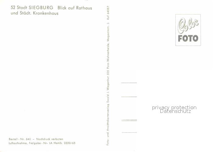 72902937 Siegburg Rathaus Staedtisches Krankenhaus Fliegeraufnahme postalisch nicht gelaufen Erhaltung siehe scans [FriedD77] KatCode: 11110005382060