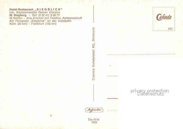 72729020 Siegburg Restaurant Siegblick postalisch nicht gelaufen Erhaltung siehe scans [AndreD76] KatCode: 11110005382060