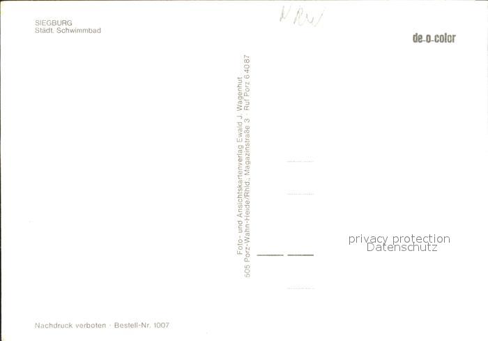 72071061 Siegburg Schwimmbad postalisch nicht gelaufen Erhaltung siehe scans KatCode: 11110005382060